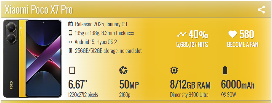 | Chipset | Mediatek Dimensity 8400 Ultra (4 nm) | |